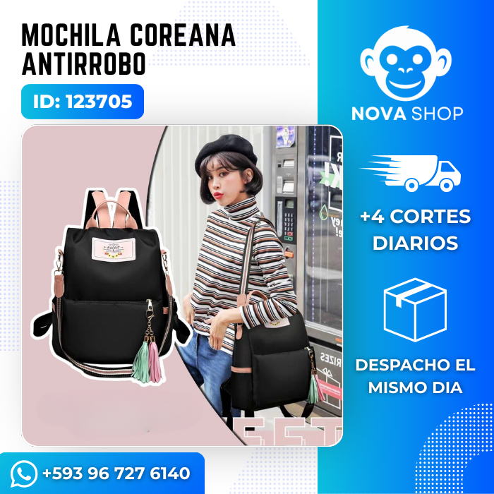 Si buscas un bolso que combine moda, funcionalidad y protección, la Mochila Coreana Rabbit Antirrobo es para ti. Inspirada en el estilo asiático minimalista y moderno, esta mochila no solo eleva tu outfit, sino que también cuida lo que más valoras. Perfecta para el ritmo dinámico del día a día en Ecuador, donde necesitas practicidad sin renunciar al buen gusto.